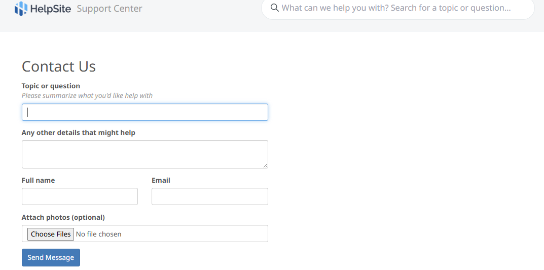 HelpSite includes a smart contact form that captures unresolved questions while suggesting relevant content.