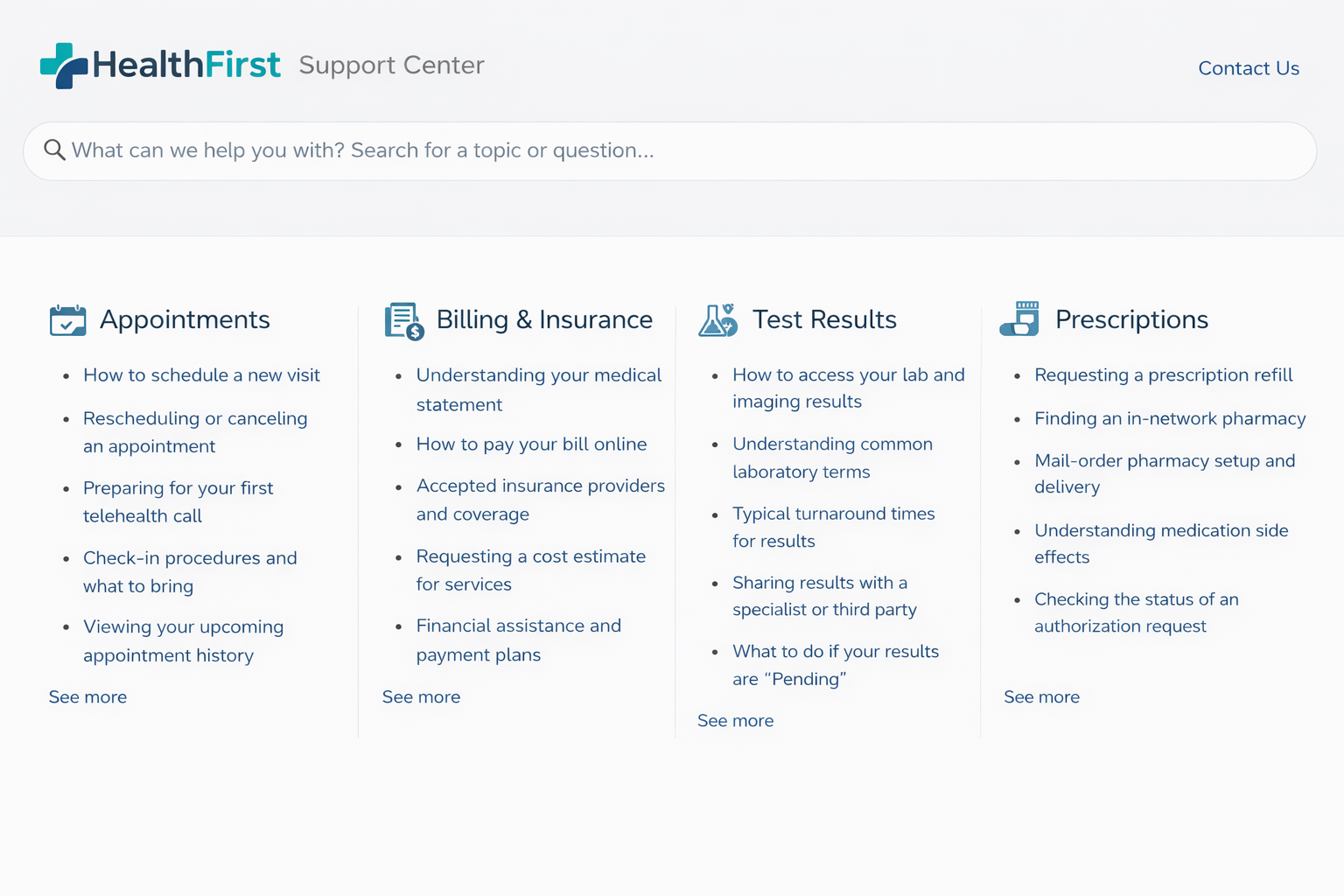 Unlike PDFs or static FAQ pages, a healthcare knowledge base is built for fast scanning and search.